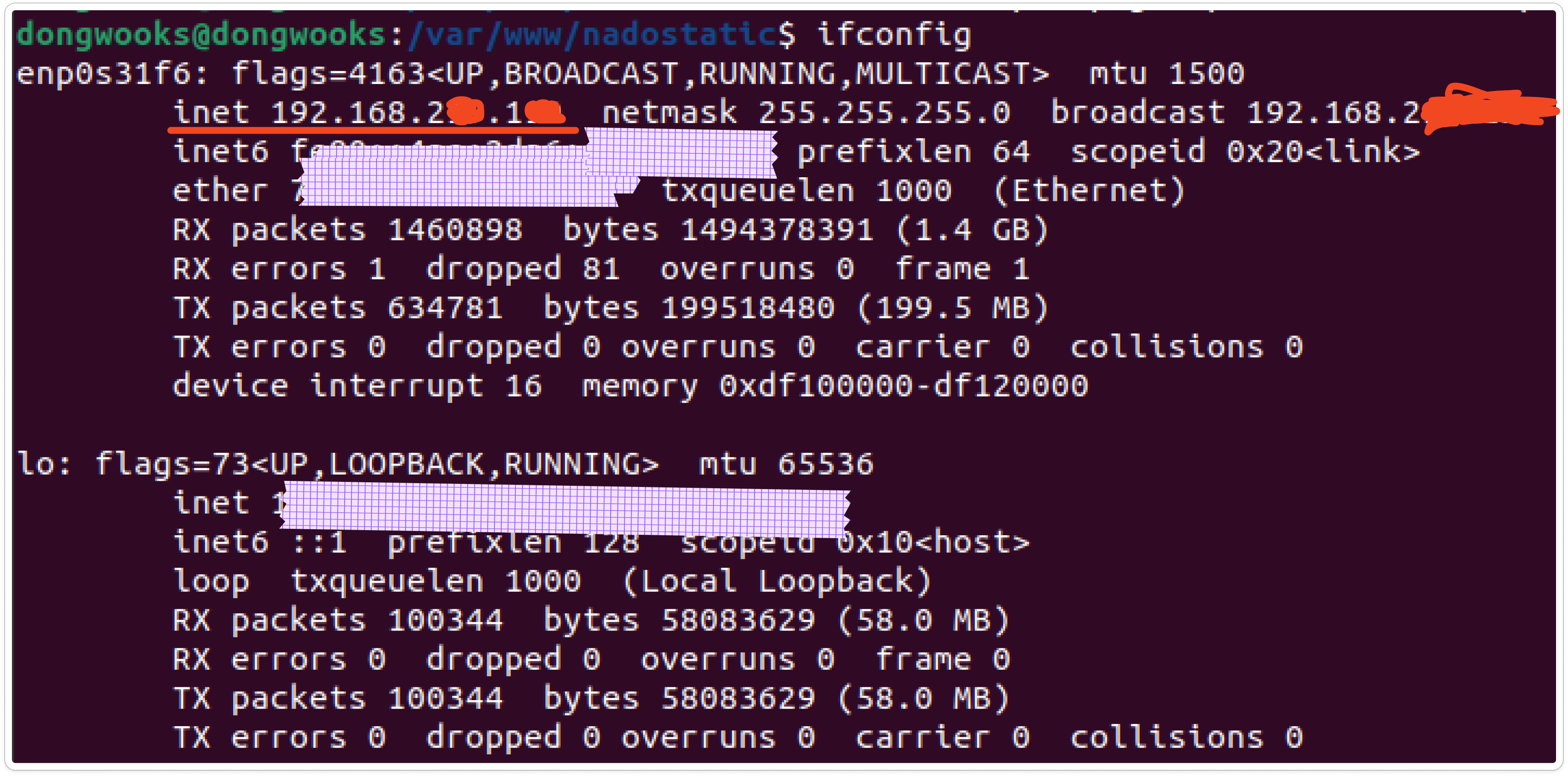 저는 Ubuntu 환경에서 진행하기 때문에 ifconfig를 사용해서 ip주소를 알아보았습니다.