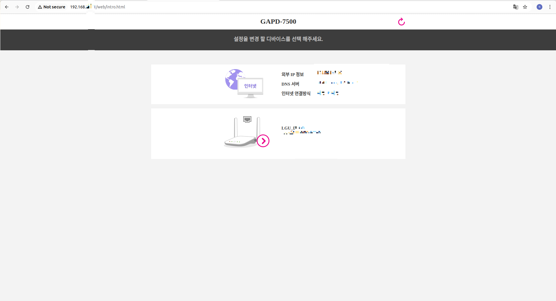 여기에 192.168.2xx.1 만 사용해서 인터넷에 접속하면 공유기 설정 페이지가 나옵니다.
